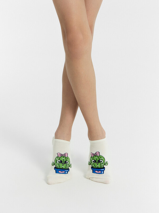рис.2377 Детский носок гладкий суперкороткий с рисунком в виде кактусов