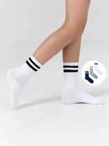 Носки детские из высококачественного хлопка с высокой резинкой и рисунком в виде поперечных полосок. Натуральные волокна отлично пропускают воздух и впитывают влагу, дарят ощущение комфорта в течение дня. Благодаря небольшому количеству эластана в составе, носки удобно сидят на ножке и не сползают, хорошо тянутся и легко надеваются. Пятка и мысок дополнительно укреплены для защиты от протирания. Резинка мягко, но надежно удерживает носки, не оставляя на коже следов. Эти носки точно понравятся вашей маленькой моднице. Рекомендуем!