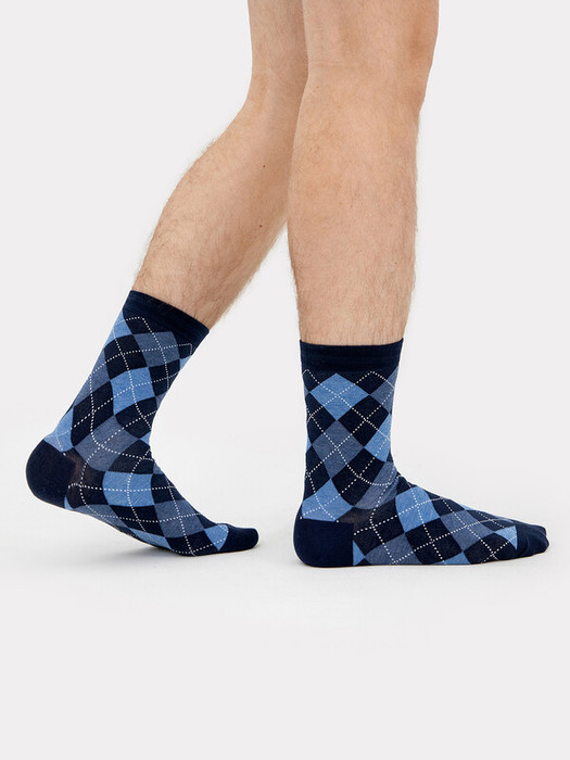 рис.2657 Мужской носок классический высокий с рисунком в виде ромбов.