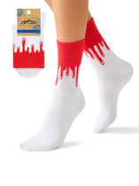 рис.3034 Мужской носок классический, высокий, с рисунком в виде надписи "СТАТУС ЖЕНАТ".