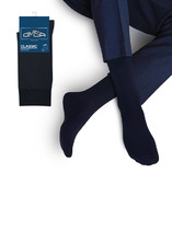 Рис.3084 Мужской носок однотонный средней длины и резинкой на поголенке.