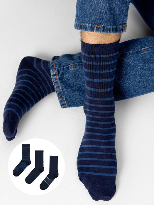 Рис.2050  Мультипак из трех пар мужских носков  с высоким плотным бортом и рисунком в виде поперечных полосок.