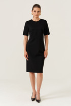 Платье женское короткое  с рукавами, отрезное по талии, из ткани рошель.