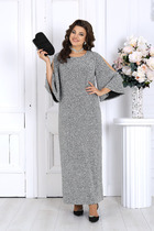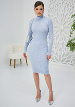 Платье женское прямого силуэта из трикотажного полотна селаник. Горловина круглой формы, с притачным воротником с отрезной стойкой из поплина и застежкой на пуговицу. Плечо слегка спущено, пройма углублена. Рукав втачной, длинный, по низу с отрезной манжетой из селаника. Платье длиной чуть выше колена.
