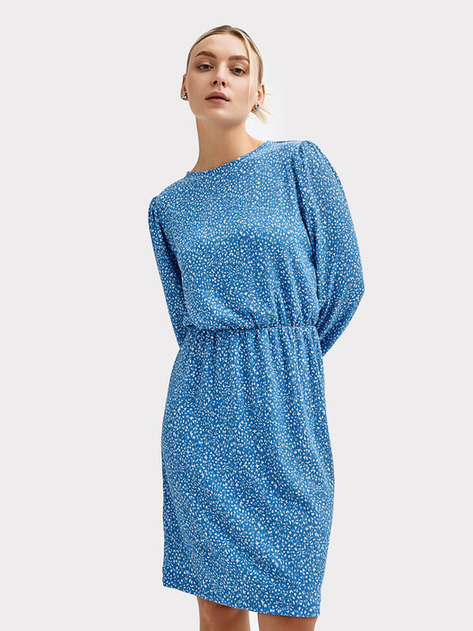 Рукав втачной, по окате с небольшой сборкой. Низ рукава подгибка с эластичной тесьмой внутри, образует сборку. Платье отрезное по талии с эластичной тесьмой, по талии присборено.