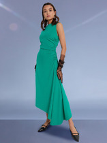 Платье асимметричное. В правом боковом шве сборка на верхней части.