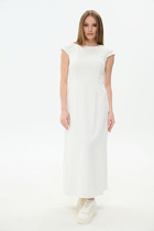 Платье женское прилегающего силуэта из рибаны. Длина миди. Рукава втачные, длинные. Горловина округлая, обработана обтачкой из основного полотна. По переду и спинке декоративные лампасы из кулирного полотна. Низ изделия и рукава обработаны швом вподгибку.