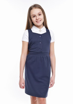 Сарафан А-силуэта, с отрезным воланом по низу. Kруглый вырез горловины, без рукавов. Низ изделия обработан швом в подгибку.