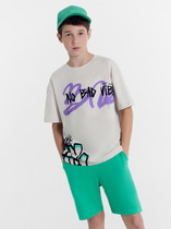 Шорты для девочек свободного силуэта из ткани. Посадка высокая. На детали переда карманы с отрезным бочком. Пояс отрезной с эластичной тесьмой RV40 внутри, на поясе пробиты петли и вставлен шнур из основного полотна. Шов втачивания пояса распошит. Длина выше колена. Низ обработан швом вподгибку с закрытым краем.