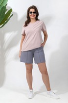 Шорты женские свободного силуэта из ткани. На детали переда карманы с отрезным бочком.