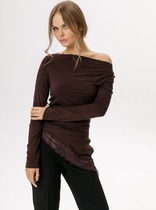 Рукав длинный, спущенный. Горловина обработана обтачкой из рибаны. Манжеты и пояс из рибаны.