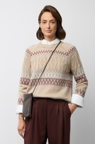 Рукав рубашечного кроя, длинный, широкий, на манжете из рибаны, шов притачивания манжеты расстрочен плоскошовкой (одна игла по рукаву, вторая по манжете). По низу джемпера--отрезной пояс из рибаны, шов притачивания расстрочен плоскошовкой.