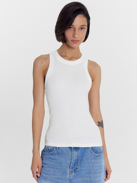 Молочный женский топ из эластичной рибаны станет идеальной основой для любого образа. Модель облегающего силуэта мягко подчеркивает фигуру, а длина ниже уровня талии позволяет легко комбинировать его с юбками, брюками и джинсами высокой посадки. Узкие бретели и углубленная пройма обеспечивают комфорт и свободу движений, делая топ особенно удобным для активного дня. Плотно прилегающая круглая горловина не деформируется при носке. Горловина и проймы аккуратно окантованы широкой бейкой из основного материала для дополнительного удобства и сохранения формы.