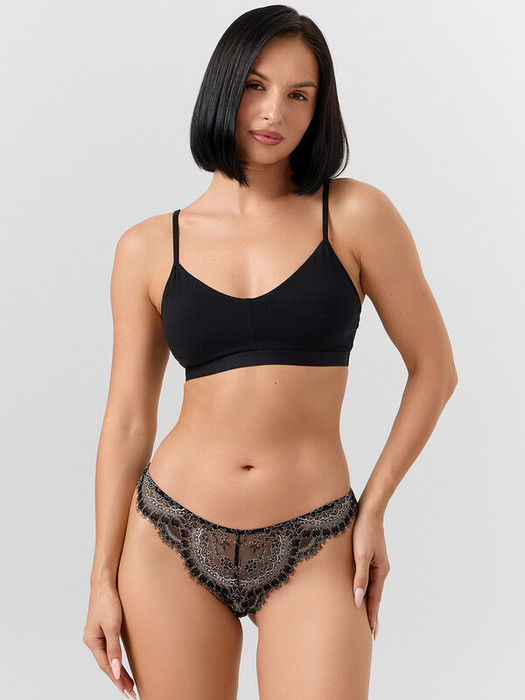 Модель сочетает в себе романтичный вид и практичность: анатомичная конструкция и плоские швы обеспечивают комфорт при длительной носке. Деликатные резинки не оставляют следов на коже, сохраняя ощущение легкости в течение всего дня. Состав с добавлением эластана гарантирует идеальную посадку и сохранение формы после множества стирок.