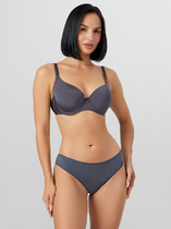 Трусы женские, средняя линия  талии, силуэт - бразилиано. Передняя и задняя детали выполнены из рибаны. Верхний срез трусов обработан бейкой поперечной из рибаны, внутри жилка 6мм. Нижние срезы обработаны бейками поперечными из рибаны. Подкладка ластовицы из хлопка, отлетная по верхнему срезу. Посередине бейки по верхнему срезу передней и задней детали застрочена «птичка».