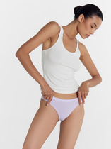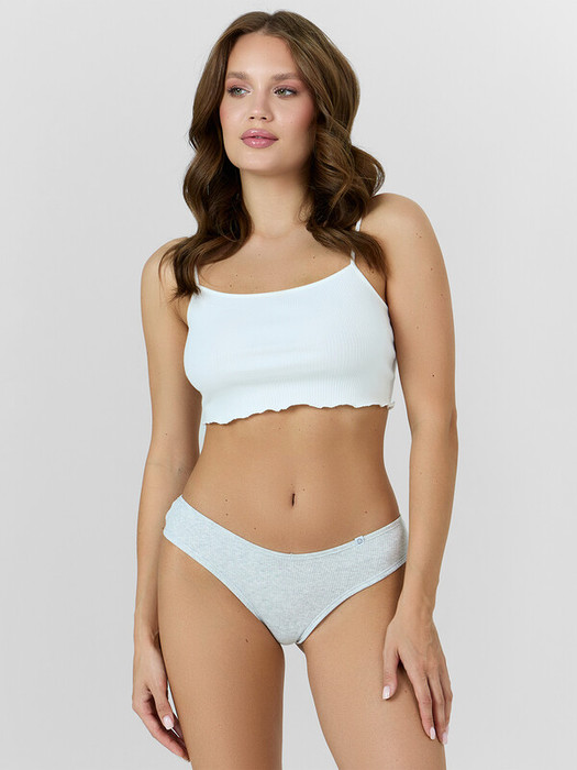 Трусы женские, средняя линия талии, силуэт - бразилиано. Передняя и задняя детали выполнены из рибаны. Верхний срез трусов обработан бейкой поперечной из рибаны, внутри жилка 6мм. Нижние срезы обработаны бейками поперечными из рибаны. Подкладка ластовицы из хлопка, отлетная по верхнему срезу. Посередине бейки по верхнему срезу передней и задней детали застрочена «птичка».