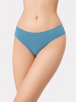 Трусы женские, средняя линия  талии, слипы. Передняя и задняя детали выполнены из кружевного полотна. Рюша из кружевного полотна. Подкладка ластовицы из хлопка, отлетная по верхнему срезу. Верхний срез обработан тесьмой с зубом. Нижние срезы обработаны жилкой 6мм. Край рюши обработан закруткой.