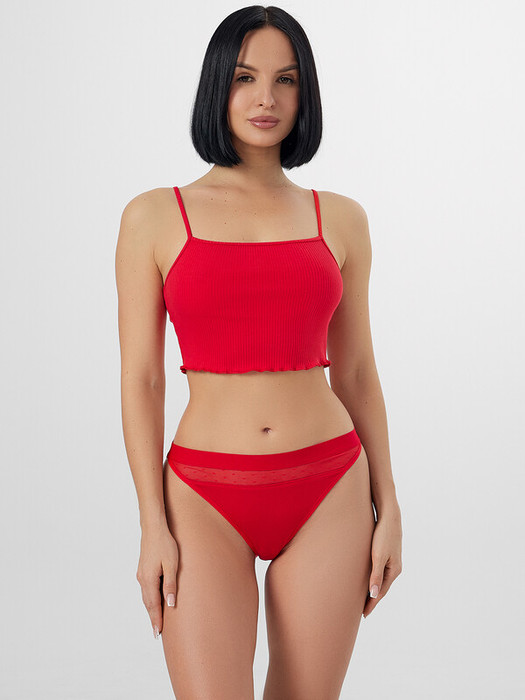 Трусы женские, средняя линия талии, силуэт - бразилиано. Передняя деталь выполнена из кружева. Ластовица из кружева на подкладке из хлопка. Задние детали выполнены из кружева. По верхнему срезу трусов жилка 6мм. По нижним срезам передней детали жилка. На передней детали декоративные обтачки из ткани.