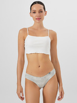 Изящные трусики-бразилиана — воплощение комфорта и утончённого стиля. Выполненные из эластичного кружева и мягкого кулирного полотна, они обеспечивают идеальную посадку благодаря средней высоте талии и V-образному силуэту. Передняя часть выполнена из кружева, добавляющего женственность, а задняя деталь из гладкого кулирного полотна со средним швом для дополнительного комфорта. Ластовица из натурального материала и аккуратная обработка нижних срезов швом вподгибку завершают этот элегантный образ.