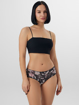 Трусы женские, силуэт бразилиана, из кружева эластичного, с высокой посадкой. Передняя деталь и ластовица из кружева. Ластовица отрезная. Подкладка ластовицы из кулирного полотна