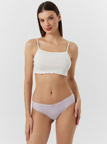 Слип-бикини из натурального хлопкового полотна – гипоаллергенного и приятного на ощупь. Линия талии завышена, бедра открыты. Верхний срез обработан декоративной тесьмой, по ножкам – жилка. Базовая расцветка!