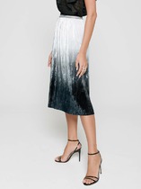 Юбка А-силуэта, длиной миди. По переду заложена складка. По бокам обработаны карманы-хулиганы, подкладка из подкладочной ткани. Верхний срез обработан обтачкой. Задняя часть с центральным швом и застежкой на молнию (металл №5). На задних половинках застрочены вытачки. Нижний срез подклеен.
