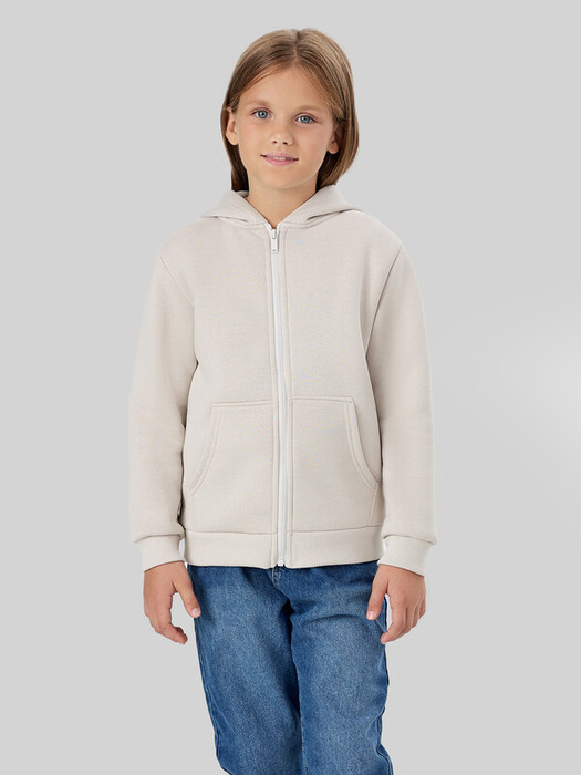 Жакет из трикотажного футера с теплым подчесом. Спущенная линия плеча гарантирует свободу движений. Прямой свободный силуэт, уютный капюшон, длинные рукава на манжетах, удобный карман-кенгуру, центральная застежка на молнию – эта модель наверняка понравится вашей девочке.