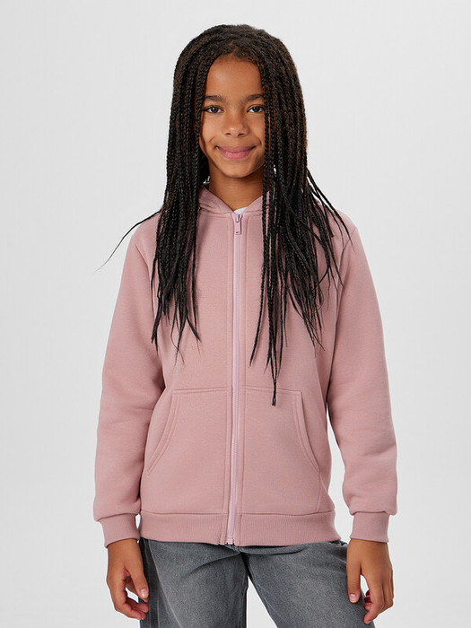 Жакет из трикотажного футера с теплым подчесом. Спущенная линия плеча гарантирует свободу движений. Прямой свободный силуэт, уютный капюшон, длинные рукава на манжетах, удобный карман-кенгуру, центральная застежка на молнию – эта модель наверняка понравится вашей девочке.