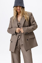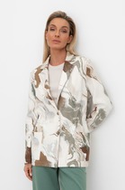 Жакет женский прилегающего силуэта. Горловина округлой формы обработана обтачкой 25мм в готовом виде из основного полотна. Рукав втачной, длинный. Жакет с центральной застежкой с петлями и пуговицами 10мм. Низ изделия и рукавов обработаны швом в подгибку.