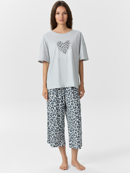 Женская пижама Mark Formelle станет идеальным дополнением вашего домашнего гардероба. Свободная футболка с круглой горловиной и короткими рукавами со спущенной линией плеча обеспечивает максимальный комфорт и свободу движений. Бриджи свободного кроя с эластичным поясом идеально сидят на талии, не стесняя движений и обеспечивая удобство на протяжении всего дня. Изделие выполнено из нежной кулирки - мягкого и приятного к телу материала, который отличается дышащими свойствами и гипоаллергенностью. Подарите себе или своим близким эту чудесную пижаму и наслаждайтесь уютными домашними вечерами.