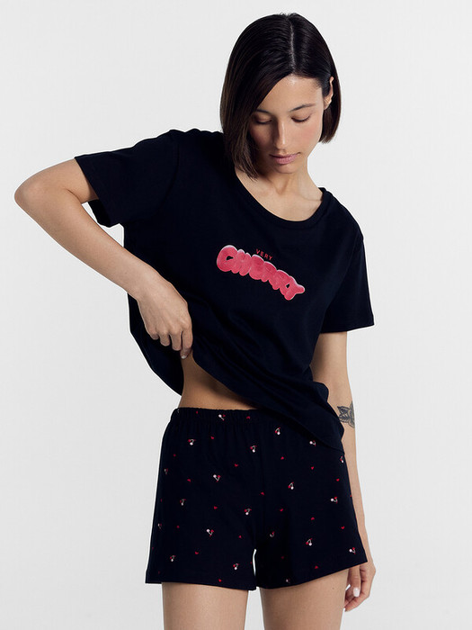 Совместные покупки Каменск-Уральский Женская одежда Пижамы, халаты — Mark FormelleКОМПЛЕКТ ЖЕНСКИЙ (ДЖЕМПЕР, ШОРТЫ) 592325 592325 черный +вишенки на