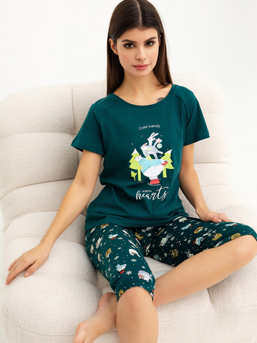 Совместные покупки Каменск-Уральский Женская одежда Пижамы, халаты — Mark FormelleКОМПЛЕКТ ЖЕНСКИЙ (ФУТБОЛКА, БРИДЖИ) 592342 592342 хвоя +зверята на