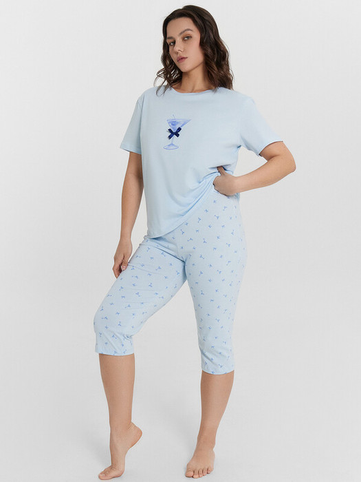 Совместные покупки Каменск-Уральский Женская одежда Пижамы, халаты — Mark FormelleКОМПЛЕКТ ЖЕНСКИЙ (ФУТБОЛКА, БРИДЖИ) 592370 592370 голубое небо +кок