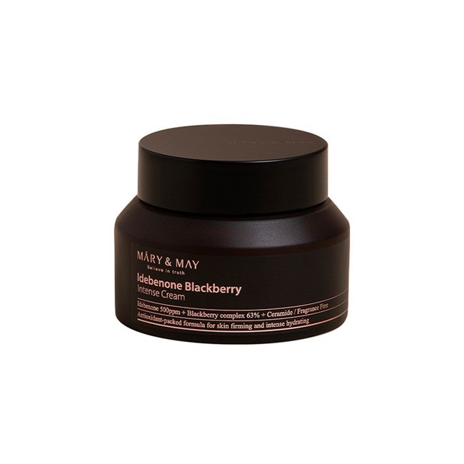 Крем с идебеноном и ежевикой Mary&May Idebenone + Blackberry Complex Intense Cream - средство с невероятно богатым сбалансированным составом, которое станет спасительной соломинкой для кожи, страдающей от недостатка влаги и сухих кожных заломов. Крем не только устранит шелушения и хорошо напитает кожу, но и поможет разгладить возрастные морщинки, защитит кожу от негативного воздействия свободных радикалов, придаст лицу яркость и отдохнувший вид. Крем обладает функцией защиты кожи от потери влаги и поддерживает ее увлажненной в течение 48 часов.