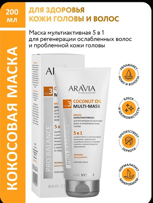 Многофункциональная кокосовая маска для регенерации безжизненных, тусклых волос и проблемной кожи головы, склонной к перхоти, зуду и покраснениям. Масло кокоса богато ценными микроэлементами и витаминами А, Е, К, обладает высокой проникающей в стержень волоса способностью, в связи с чем способствует активному восстановлению его липидного слоя и гидратации, придает волосам эластичность, мягкость и шелковистость. Благодаря высокому содержанию целого комплекса кислот: лауриновой, миристиновой, пальмитиновой, олеиновой и каприловой, кокосовое масло эффективно борется с проявлениями перхоти и зуда, успокаивает воспаления на раздраженном проблемном скальпе и оздоравливает его микробиом.