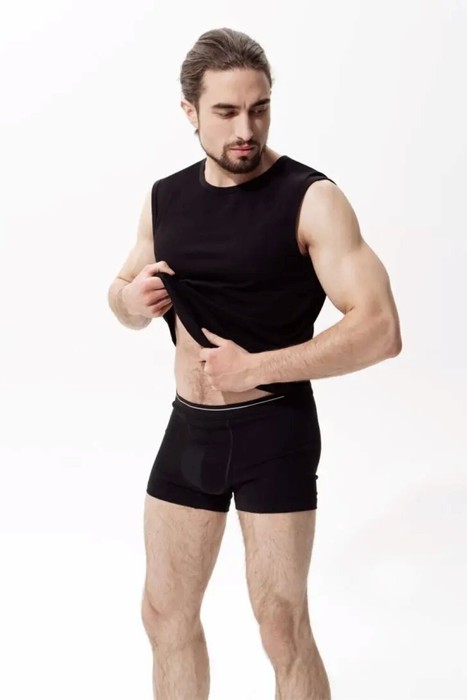 Бельевая чёрная майка с круглым вырезом горловины и широким плечём из 100% хлопка качества PENYE. Срезы майки совпадают с линиями швов деловых рубашек.Защищает рубашку от мокрых пятен в области подмышек и спины. Прекрасное решение в дополнение к деловому костюму или повседневному образу. Размерный ряд от 46 до 62.