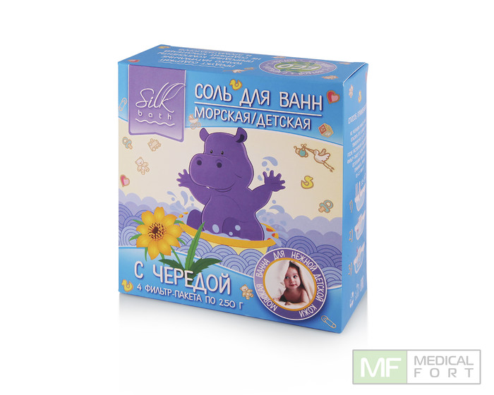 MF Соль д/ванн детская "Морская природная" с чередой (фильтр-пакет), 4х250г (353