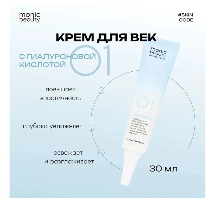 Совместные покупки Каменск-Уральский Косметика и парфюмерия Кремы для лица — MONIC BEAUTY Skin Code 01 Крем для век с Гиалуроновой кислотой (Корея)