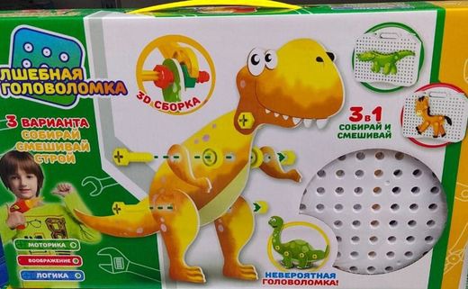 Совместные покупки Каменск-Уральский Детские игрушки Конструкторы, логические — Мозаика с шуроповертом Динозавр 3 в 1 оптом и в розницу