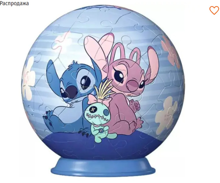 3D-пазл Ravensburger 11597 - Шарик-пазл Disney Angel - для поклонников Стича всех возрастов, начиная с 6 лет.