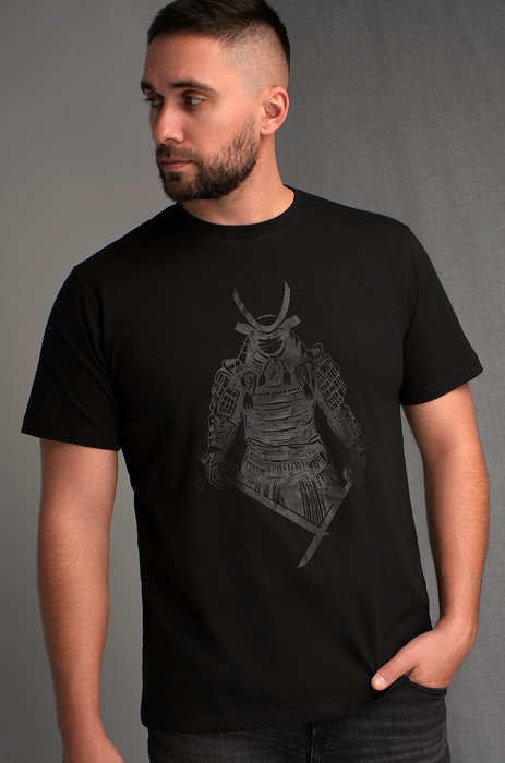 Оригинальная футболка с принтом Самурай поможет с комфортом встречать восходящее сoлнце.