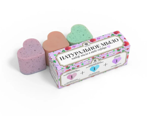 Совместные покупки Каменск-Уральский Хозтовары и личная гигиена Мыло, жидкое мыло — Набор из трёх мыл в виде сердца фиолетовый, 135 г, "Бизорюк"