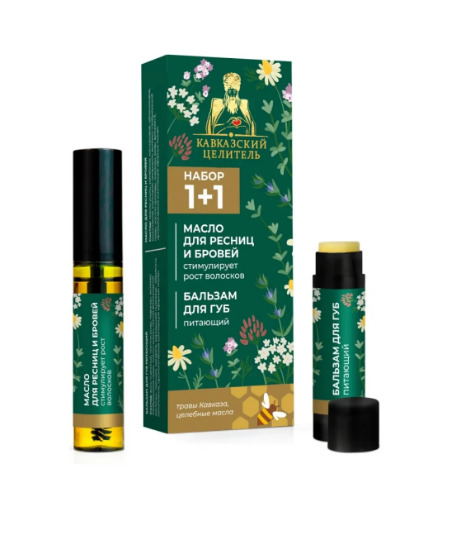 Набор «Масло для ресниц + бальзам для губ питающий», «Кавказский Целитель»