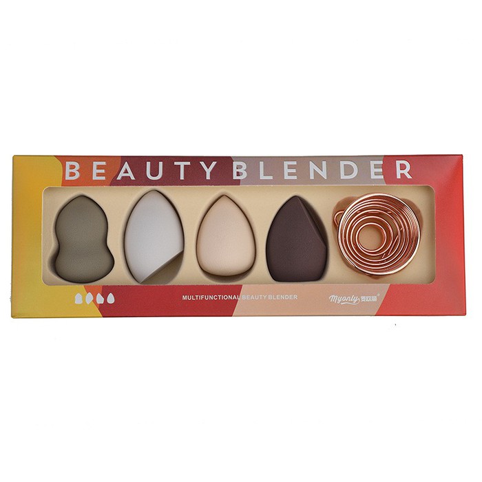 Набор спонжей для макияжа разных форм 5 в 1 в коробке (4 спонжа + 1 подставка)