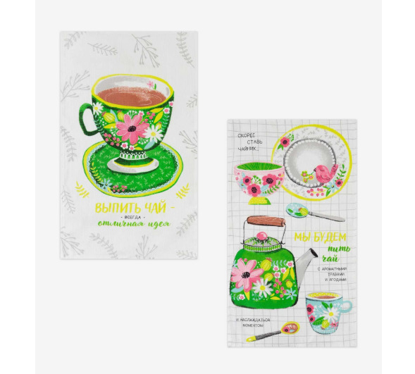 Набор вафельных полотенец Мы будем пить чай 35*60см