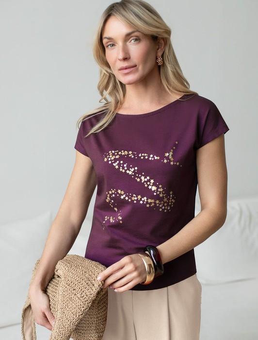 Совместные покупки Каменск-Уральский Женская одежда Футболки — Нарядная футболка с блестящим принтом