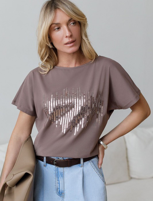 Совместные покупки Каменск-Уральский Женская одежда Футболки — Нарядная футболка с принтом пайетками