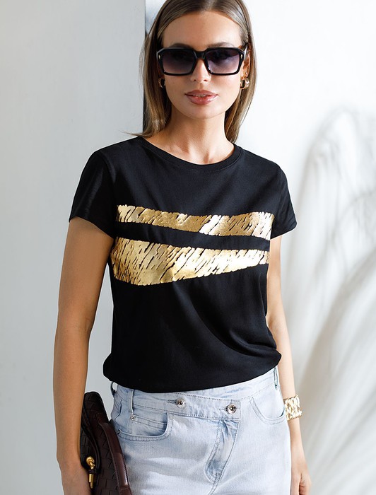 Совместные покупки Каменск-Уральский Женская одежда Футболки — Нарядная футболка с золотистым принтом