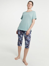 Сорочка молодежная из трикотажного гладкокрашенного полотна «кулирка меланж», слегка расширенная книзу, на узких бретелях, вытачанных из окантовки. Для регулирования длины бретелей предусмотрены пластмассовые кольца-держатели и фиксаторы. По центру переда застрочен «защип» и пришиты три декоративные пуговицы имитирующие застежку. Вырез горловины переда, спинки, низ изделия отделаны кружевом.