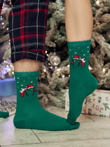 Носки "Прздник к нам приходит" Новогоднее сияние Носки из серии "Праздник к нам приходит" . Серия приурочена к новому году Весёлые новогодние принты, в сочетании с рождественскими расцветками. В верхней части носка блеск звёзд, луна с оленем, в нижней части носка принт заснеженных домиков и ёлок Отличное качество, мягкий гребенный хлопок, эластичные, мягкая резинка Всесезонные. РРЦ 290 рублей.